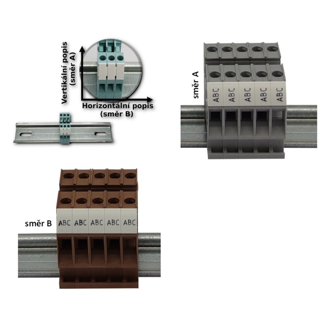 Svorky UTB-S, jsou určeny k montáži na podložku, některé typy lze připevnit i na nosnou lištu TH 35.
